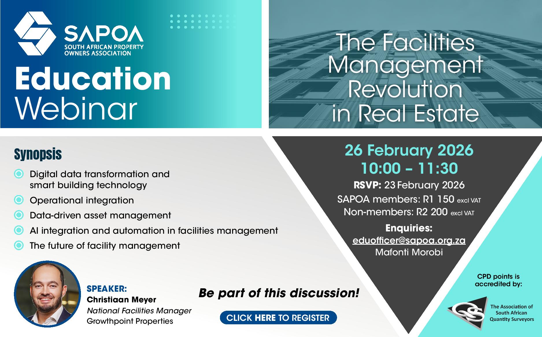 SAPOA continues to note the immense contribution of its events to the industry and the business entities to its members. It encourages networking between all members and industry leaders. Knowledge sharing at such a high level has contributed significantly to SAPOA being recognised as the official voice of the Commercial Property Industry in South Africa.